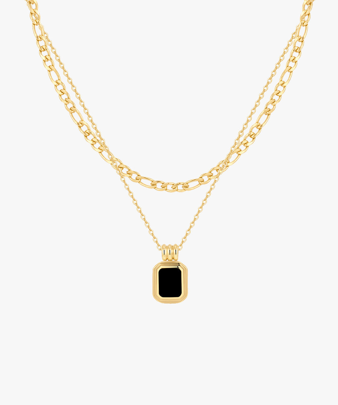 Chain Necklace for Women – Double Layer Chain with Black Onyx Pendant