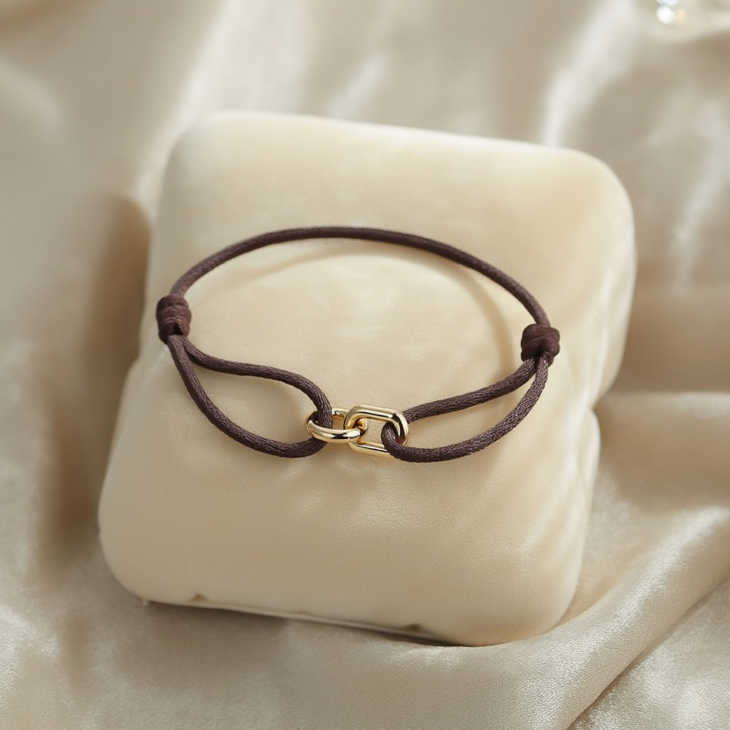 A timeless men’s bracelet featuring a refined metal element paired with a rich brown silk cord. Designed for everyday wear, this adjustable bracelet offers a clean, understated look that works effortlessly on its own or layered with other pieces.