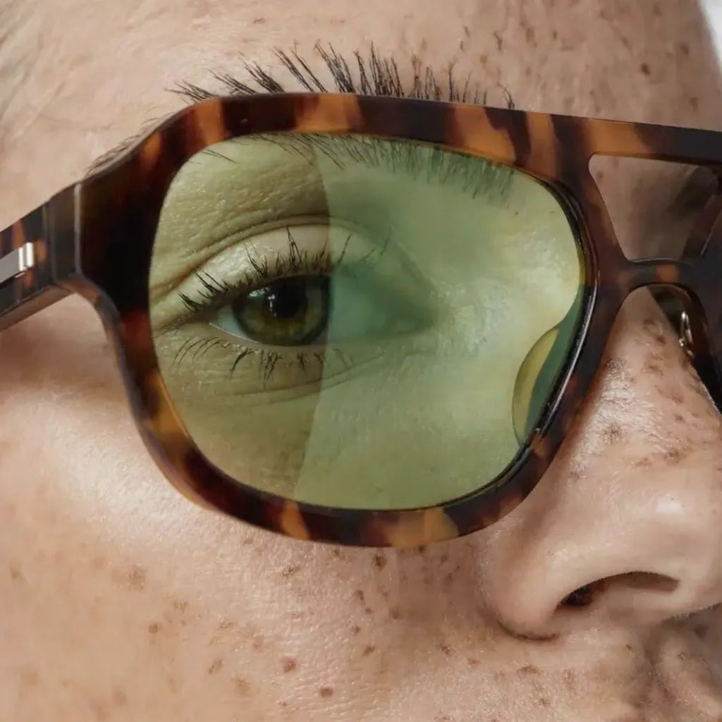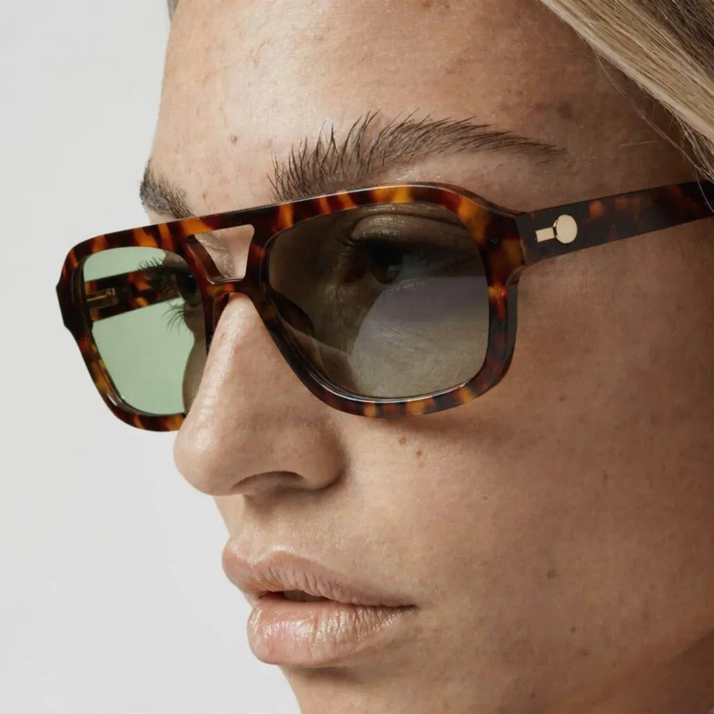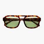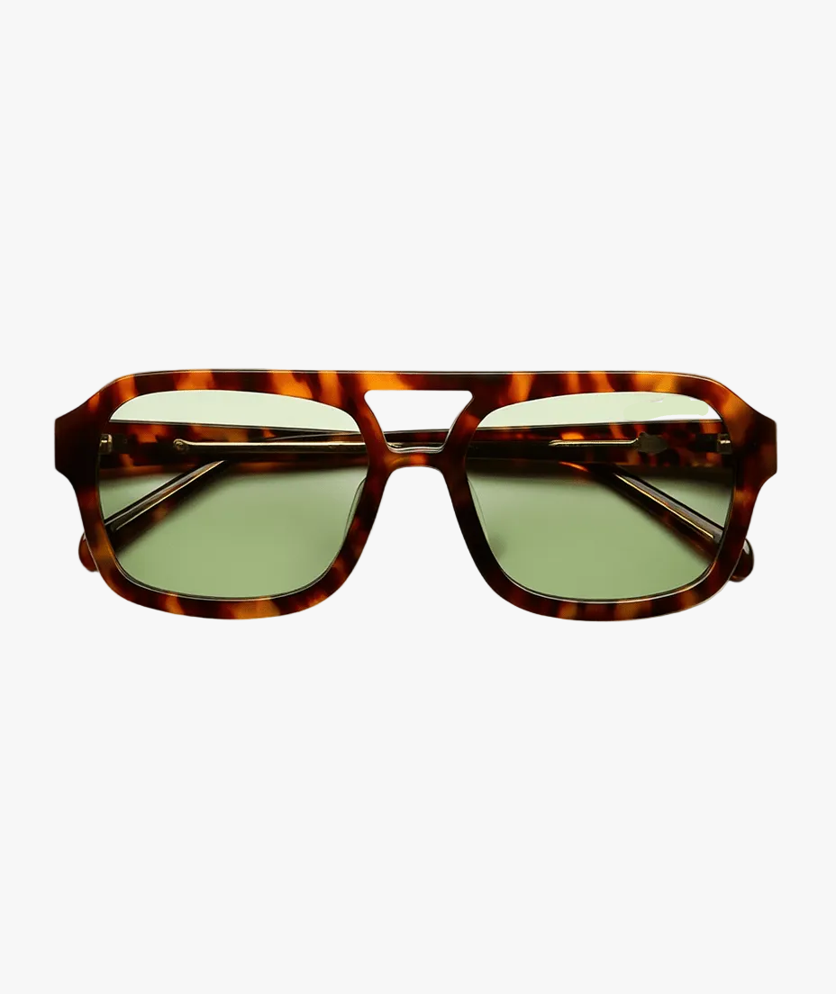 A vintage-inspired aviator design with a modern update. The tortoiseshell frame paired with soft sage lenses creates a balanced look that’s both classic and contemporary.